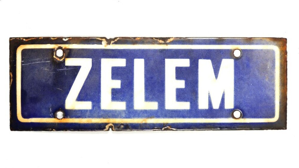 BeschrijvingBlauw bord met witte letters. Werd aan een treinaankondiger gehangen om treinen richting Zelem aan te kondigen.