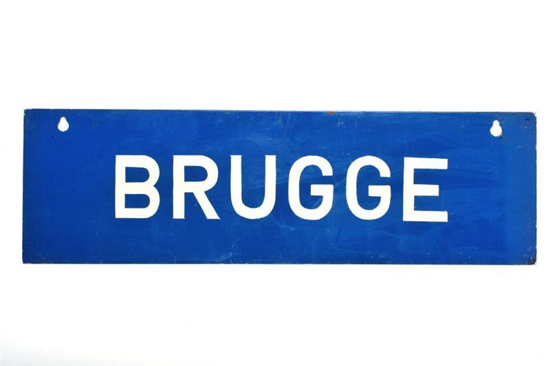 BeschrijvingBlauw bord met witte letters. Werd aan een treinaankondiger gehangen om treinen richting Brugge aan te kondigen.