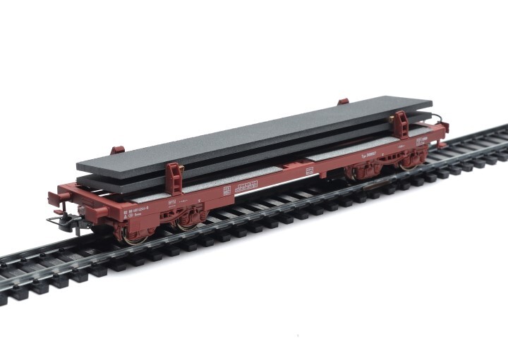 Deze platte wagen van het type Smmns is roodbruin met bovenaan metaalkleurige vlakken. Op de zijkanten staan verschillende opschriften, waaronder het logo van de NMBS en het typenummer. Als lading zijn er twee blokken beton, die los op de wagen aanwezig zijn. De maquette is gemaakt op schaal H0 1/87.