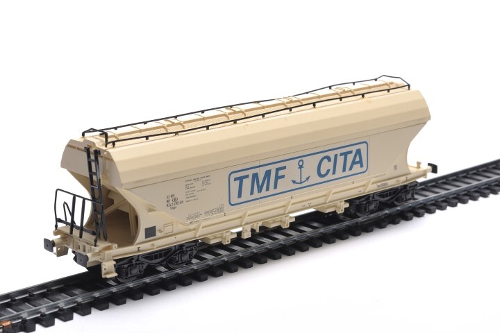 Deze witte wagen op draaistellen van het type Uapps werd gebruikt voor het vervoer van graanproducten. Op de wagen staan verschillende opschriften, waaronder het wagennummer, 'TMF CITA' en het logo van de NMBS. De maquette is op schaal H0 1/87 vervaardigd.