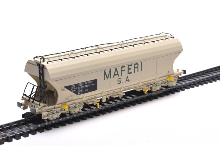 Deze witte gesloten wagen op draaistellen van het type Uapps werd gebruikt voor het vervoer van graanproducten. Op de wagen staat verschillende opschriften, waaronder het wagennummer, 'Maferi S.A.' en het logo van de NMBS. De maquette is op schaal H0 1/87 vervaardigd.