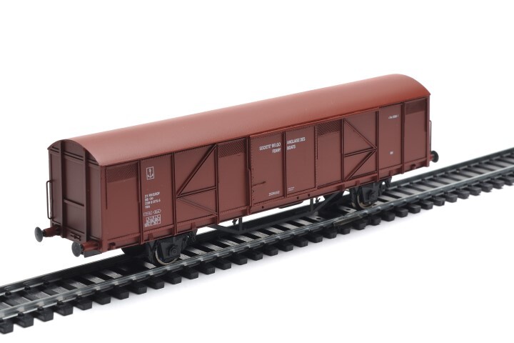 Bruine gesloten wagen op twee assen van het type Hbfs. Op de zijkanten staan verschillende opschriften zoals 'Societe Belgo Anglaise des ferry boats', het wagennummer en het logo van de NMBS. De wagen werd door de Société Belgo-Anglaise des Ferry-Boats gebruikt voor het transport van goederen naar Groot-Brittannië via de ferry. De maquette is op schaal H0 1/87 vervaardigd.
