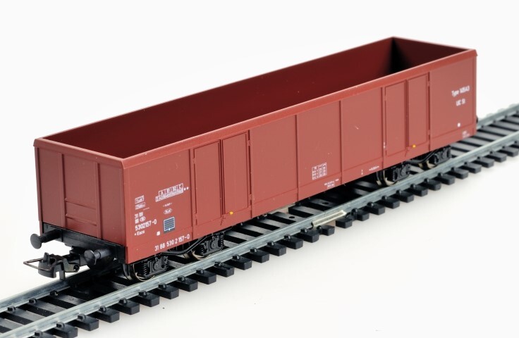 Deze open wagen met schotten van het type Eaos heeft vier assen. Hij is roodbruin en heeft verschillende opschriften aan de zijkanten, zoals het wagennummer en het logo van de NMBS. De wagen heeft aan beide zijkanten twee deuren om de goederen makkelijker uit te storten. Deze maquette is op schaal H0 1/87 gemaakt.