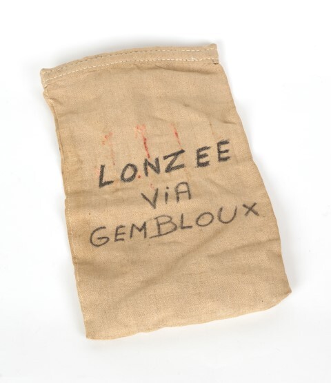 BeschrijvingGeldzak gemaakt van gonje voor geldtransport. Het sluitingsmechanisme en metalen plaatje met gegevens ontbreken echter.