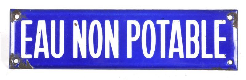 BeschrijvingBlauw bord met witte letters om aan te duiden dat het water niet drinkbaar is.