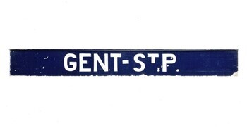 BeschrijvingBlauw bord met witte letters. Werd aan een treinaankondiger gehangen om treinen richting Gent-Sint-Pieters aan te kondigen.