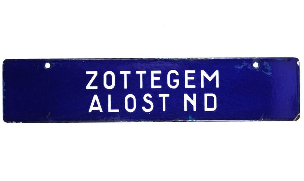 BeschrijvingBlauw bord met witte letters. Werd aan een treinaankondiger gehangen om treinen richting Zottegem en Aalst-Noord aan te kondigen.