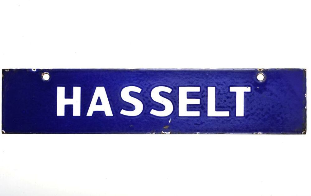BeschrijvingBlauw bord met witte letters. Werd aan een treinaankondiger gehangen om treinen richting Hasselt aan te kondigen.