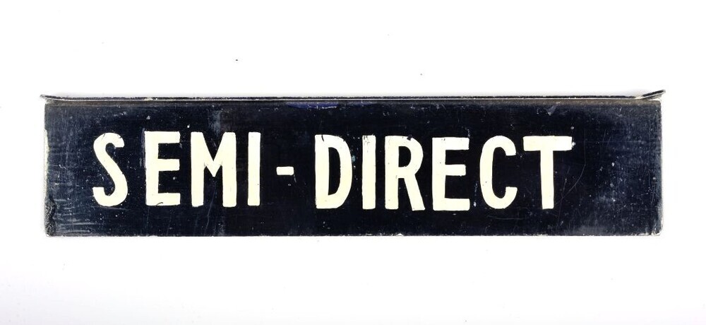 BeschrijvingZwart bord met witte letters. Werd aan een treinaankondiger gehangen om semi-directe treinen aan te kondigen.