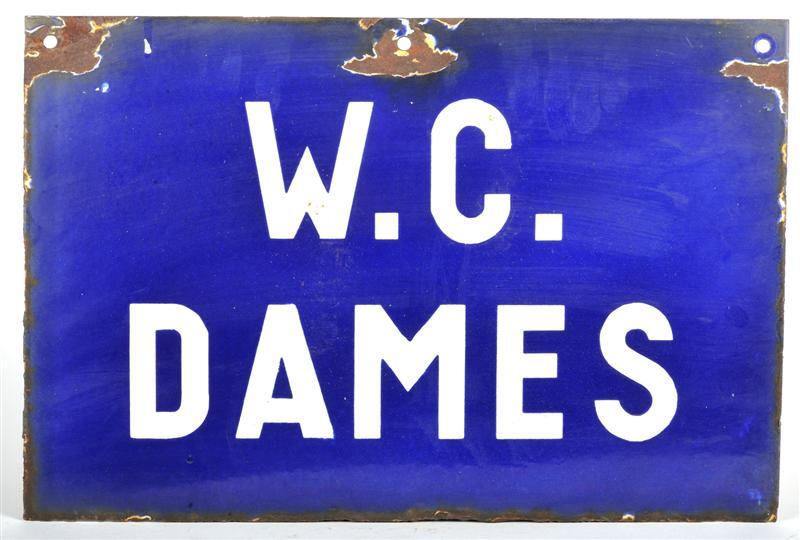 BeschrijvingBlauw bord met witte letters. Hing in een station om de toiletten aan te duiden.