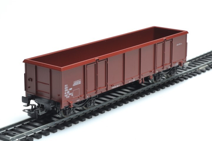 Deze bruine stortwagen op draaistellen heeft lettercode Eaos, typenummer 1415A2 en identificatienummer 21 88 143 0 015-6. Deze codes staan op de zijkanten van de wagen. De wagen heeft aan elke zijkant twee deurtjes om het storten te vergemakkelijken. De maquette werd op schaal H0 1/87 vervaardigd.