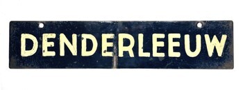 BeschrijvingBlauw bord met witte letters. Werd aan een treinaankondiger gehangen om treinen richting Denderleeuw aan te kondigen.