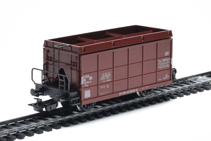 Schaalmodel van een bruine tremelwagen op twee assen met lettercode Fds, typenummer 1000G1 en identificatienummer 21-88-6120 83-8. De wagen heeft een onderlosser. Dit mechanisme aan het onderstel maakt het mogelijk de kleppen aan de zijkanten van de wagen te openen om zo de lading gemakkelijk te kunnen lossen. Bovenaan bevinden zich enkele balken in een rastervorm, hier kan men indien nodig een zeil over spannen om de lading te beschermen tegen regen. De maquette is op schaal H0 1/87 vervaardigd.