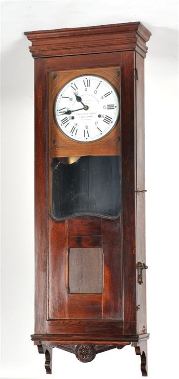 De klok met slinger en gewicht zit in een houten kast. De wijzerplaat bevat Romeinse cijfers van I tot en met XII en ook Arabische cijfers van 13 tot en met 23. In 1892 beslisten de spoorwegen om de tijdsaanduiding volgens de internationale standaardtijd te laten gebeuren. Deze standaardtijd (Greenwich- of spoortijd) verdeelde de dag in 24 uur, in plaats van twee keer 12. De aanduidingen M (morgen) en A (avond) konden zo achterwege gelaten worden.