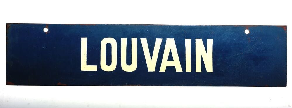 BeschrijvingBlauw bord met witte letters. Werd aan een treinaankondiger gehangen om treinen richting Leuven aan te kondigen.