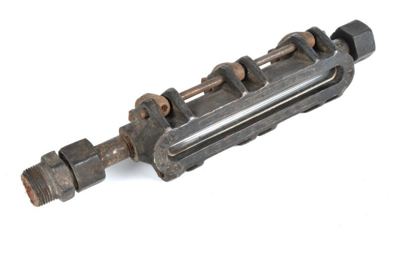 BeschrijvingDit metalen onderdeel maakte deel uit van een stoomlocomotief en diende voor het aflezen van de waterstand in de ketel.
