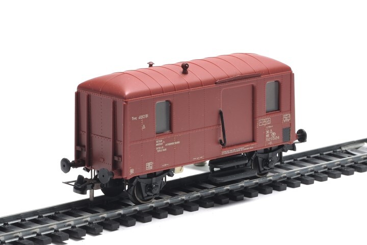 Bruine pakwagen met lettercode U, wagennummer 30 88 949 0 345-6 en typenummer 4012 B1. Op de zijkanten staan verschillende opschriften zoals het wagennummer en het logo van de NMBS en 'dadelijk terug naar Antwerpen Noord'. De maquette is op schaal H0 1/87 vervaardigd.