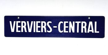 BeschrijvingBlauw bord met witte letters. Werd aan een treinaankondiger gehangen om treinen richting Verviers aan te kondigen.