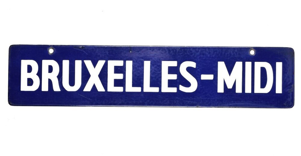 BeschrijvingBlauw bord met witte letters. Werd aan een treinaankondiger gehangen om treinen richting Brussel-Zuid aan te kondigen.