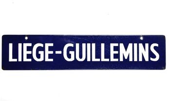BeschrijvingBlauw bord met witte letters. Werd aan een treinaankondiger gehangen om treinen richting Luik-Guillemins aan te kondigen.