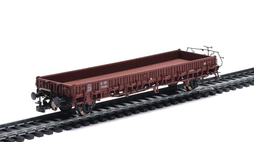 BeschrijvingBruine platte wagen van het type Ks. Op de zijkanten staan verschillende opschriften, zoals het identificatienummer en het NMBS-logo. De maquette is op schaal H0 1/87 vervaardigd.