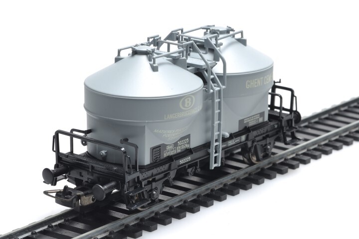 Deze silowagen heeft twee assen en twee lichtgrijze reservoirs voor poedervormige producten. Hij heeft als lettercode Ucs en identificatienummer 502225. Op de silo's staan enkele opschriften, zoals 'Langerbruggeacc. c.m.b.', het NMBS-logo, 'Ghent Cement', en 'matieres pulverulentes poedervormige stoffen'. De maquette is op schaal H0 1/87 vervaardigd.