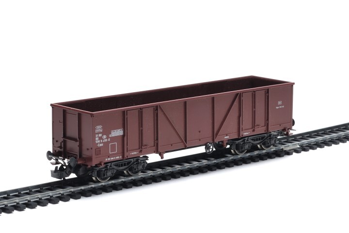 Bruine stortwagen met lettercode Eaos, wagennummer 31 88 596 9 499-0 en typenummer 1415A2. De wagen op draaistellen heeft hoge schotten met aan beide zijden twee deuren om de goederen makkelijker uit te storten. Op de zijkanten staan verschillende opschriften zoals het NMBS- logo. De maquette werd op schaal H0 1/87 vervaardigd.