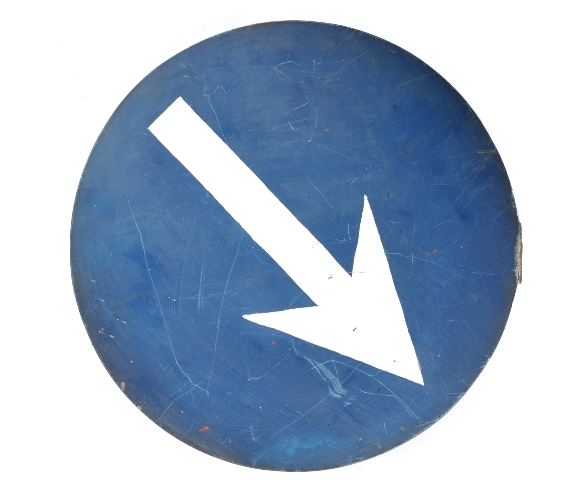 Rond blauw bord met een witte pijl. In België rijden treinen aan de linkerkant, dus seinen en seinborden staan standaard aan de linkerkant van het spoor opgesteld. Wanneer een sein, uitzonderlijk, niet langs de reglementaire kant staat opgesteld, moet er onder het sein een rond blauw bord met een witte pijl aangebracht worden. De pijl is gericht naar het spoor waarvoor het sein van toepassing is.