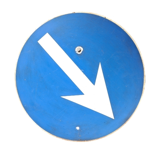 Rond blauw bord met witte rand en een witte pijl. In België rijden treinen aan de linkerkant, dus seinen en seinborden staan standaard aan de linkerkant van het spoor opgesteld. Wanneer een sein, uitzonderlijk, niet langs de reglementaire kant staat opgesteld, moet er onder het sein een rond blauw bord met een witte pijl aangebracht worden. De pijl is gericht naar het spoor waarvoor het sein van toepassing is.