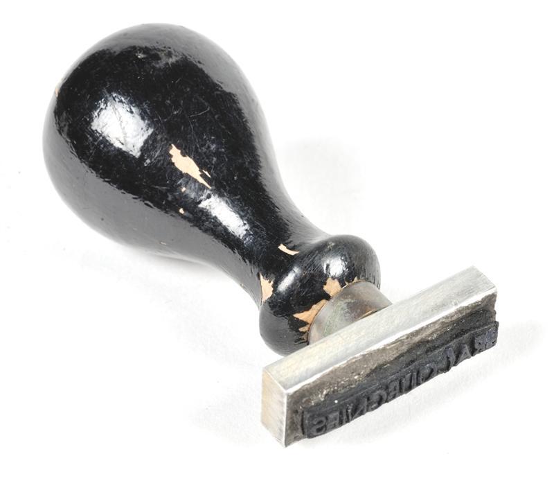 TitelMetalen stempel 'Bracquegnies' met houten handvat