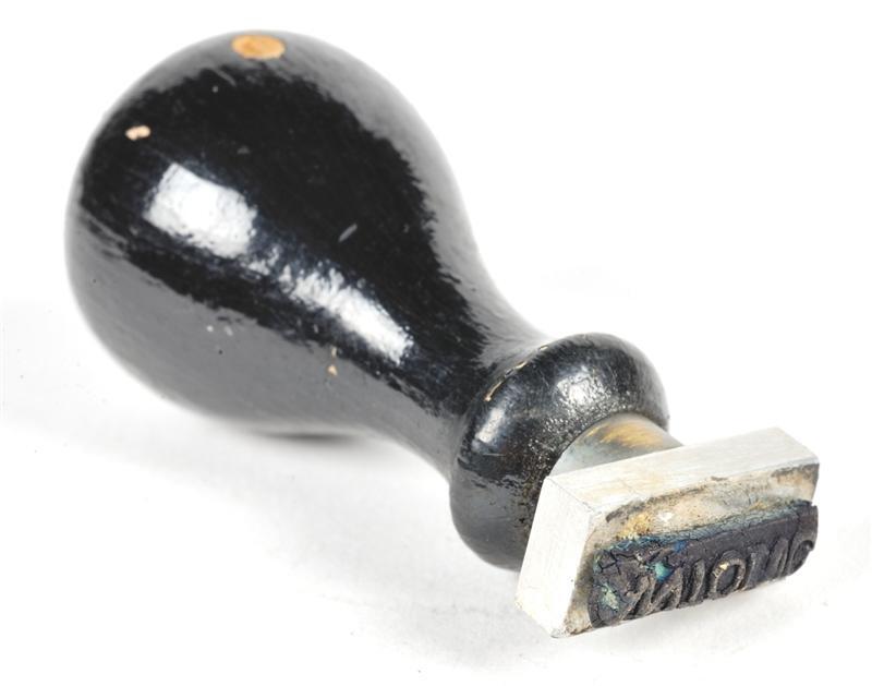 TitelMetalen stempel 'Antoing' met houten handvat