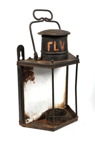 Deze lantaarn had oorspronkelijk drie glazen zijden. In het midden bevond zich een petroleumreservoir. De lantaarn kon door middel van twee haken aan de achterkant opgehangen worden. Bovenaan bevindt zich een handvat. Bovenaan staat 'FLV 10'. Dit is de telegrafische code van het station Leuven.