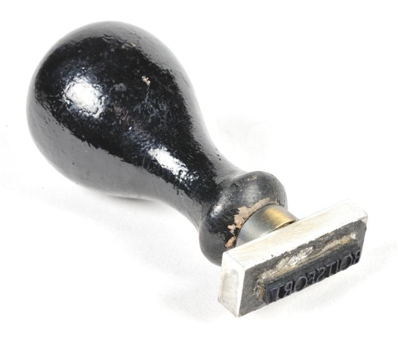 TitelMetalen stempel 'Boitsfort' met houten handvat