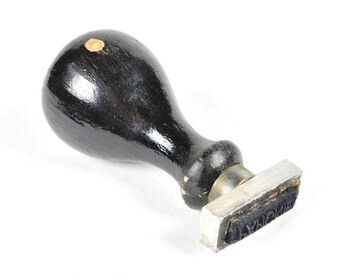 TitelMetalen stempel 'Papignies' met houten handvat