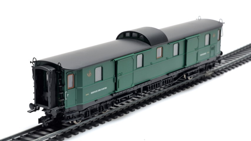 Dit is een vierassige pakwagen van de Deutsche Reichsbahn Gesellschaft die na de Tweede Wereldoorlog door België werd overgenomen. Daar werd hij gebruikt door de Postdienst. Het schaalmodel is donkergroen, heeft een zwart dak en op de zijkanten staat het logo van de Postdienst, het identificatienummer en 'service des postes postdienst'. De maquette is op schaal H0 1/87 vervaardigd.