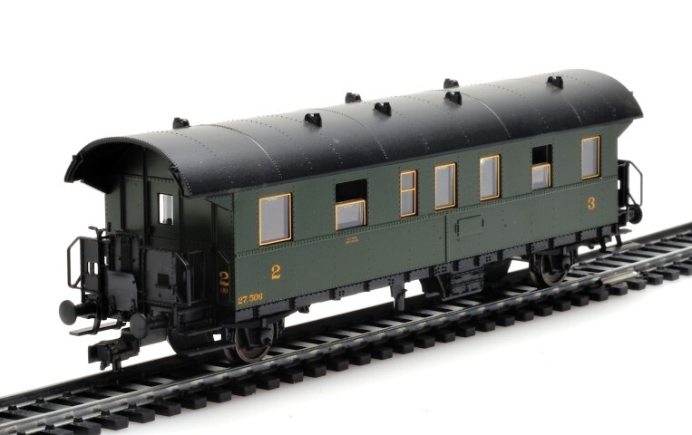 Dit is een tweeassig rijtuig dat na de Tweede Wereldoorlog van de Deutsche Reichsbahn door België werd overgenomen. Toen het nog deel uitmaakte van de Duitse spoorwegen, had dit rijtuig het nummer 36.405, met als vroegere stelplaats Keulen (bouwjaar 1929). Het werd in 1945 door de NMBS genummerd met 27.506. Dit is een schaalmodel van een donkergroen rijtuig tweede en derde klas. Het dak is zwart. De voor- en achterzijde van het rijtuig hebben een overdekt balkon. Op de zijkanten bevinden zich verschillende opschriften: het rijtuignummer, 'niet roken non fumeurs' en de klasaanduiding. De maquette werd op schaal H0 1/87 vervaardigd.