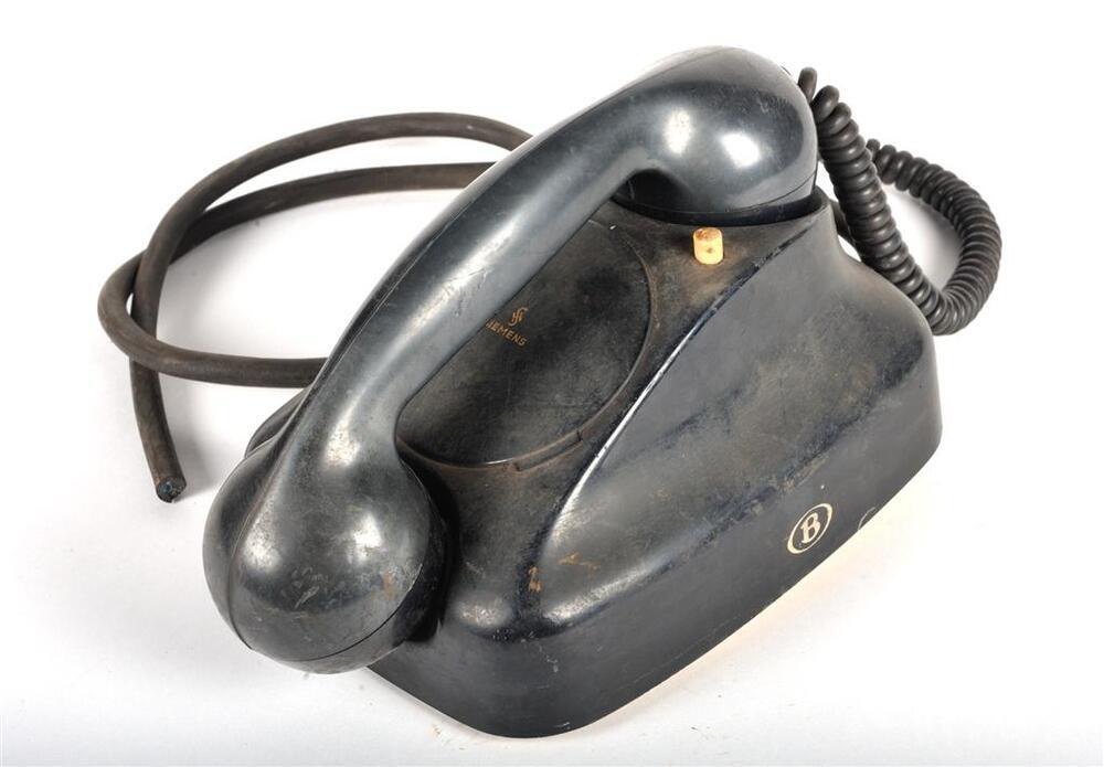 BeschrijvingZwart telefoontoestel zonder draaischijf of nummertoetsen. De hoorn bevindt zich overlangs bovenop het toestel. Aan de zijkant van de telefoon staat een wit NMBS-logo.