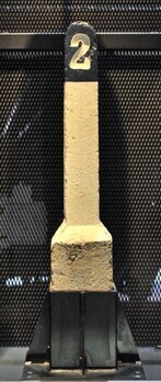 BeschrijvingDeze betonnen paal is vierkant, met bovenaan een afgeronde top. De paal is wit, de top is blauw met een wit cijfer 2.