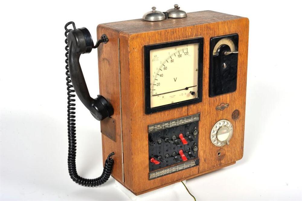 Dit testsysteem werd door technici gebruikt, om allerlei parameters te controleren. Het houten toestel met een voltmeter, ohmmeter, impulsmeter en draaischijf diende om het doorschakelen van telefoons aan de hand van de schakelaars te testen. Op de zijkant is een hoorn bevestigd en bovenaan zijn twee bellen aangesloten.