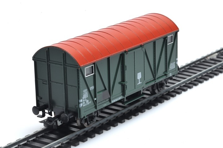 BeschrijvingGroene gesloten wagen met bruin dak van het type Gkklms uit 1947. Op de zijkanten staan verschillende opschriften, zoals het wagennummer en 'dienstbaan werkwagen bankwerker weegbruggen groep-Antwerpen'. De maquette is op schaal H0 1/87 vervaardigd.