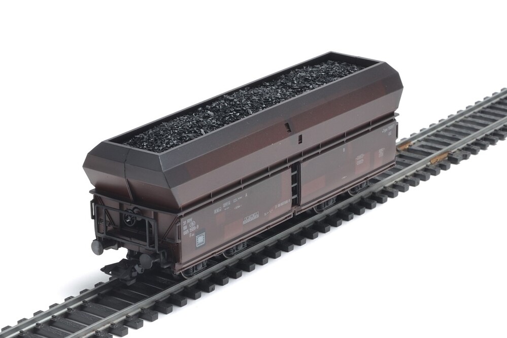 Bruine tremelwagen op draaistellen met wagennummer 31 88 665 1 589-9, lettercode Fals en typenummer 1000F7. De wagen heeft een onderlosser. Dit mechanisme aan het onderstel maakt het mogelijk de kleppen aan de zijkanten van de wagen te openen om zo de lading gemakkelijk te kunnen lossen. Er staan verschillende opschriften op de zijkanten van de wagen, zoals het wagennummer en het logo van de NMBS. De maquette werd op schaal H0 1/87 vervaardigd.