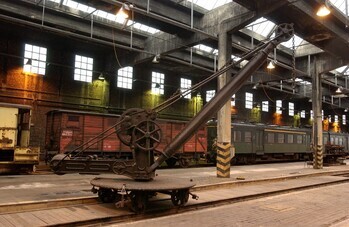 BeschrijvingDeze zwarte hijskraan werd gebruikt in het station van Doornik op de goederenkoer. De kraan is gemonteerd op een rond voortrollend plateau, dat opgesteld was op een kort spoor, speciaal aangelegd voor de goederenkraan. De kraan werd bediend door twee grote draaihendels, één langs elke kant.