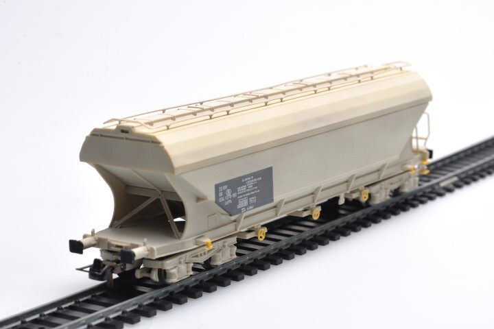 Deze grijze wagen op draaistellen heeft als identificatienummer 33 88 934 1 079-9 en lettercode Uapps. Op de zijkanten staan verschillende opschriften, zoals het wagennummer en 'SA Krevino NV Lefebvredok NK 60'. De maquette is op schaal H0 1/87 vervaardigd.