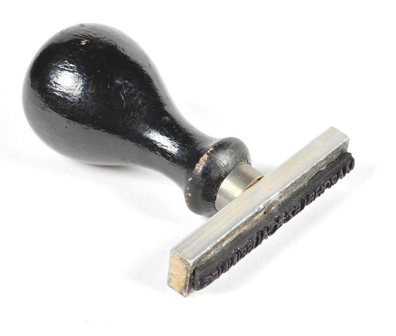 TitelMetalen stempel 'Marche-Lez-Ecaussinnes' met houten handvat