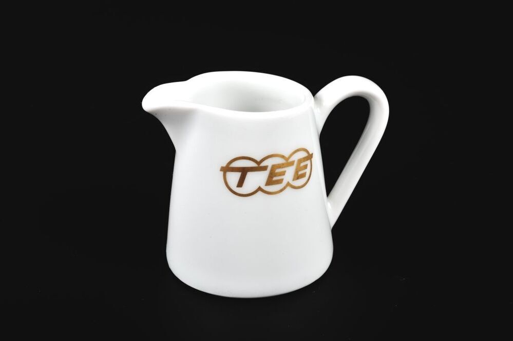 BeschrijvingWit kannetje met het TEE-logo in gouden letters. Het kannetje heeft een smal oor en een kleine schenktuit.