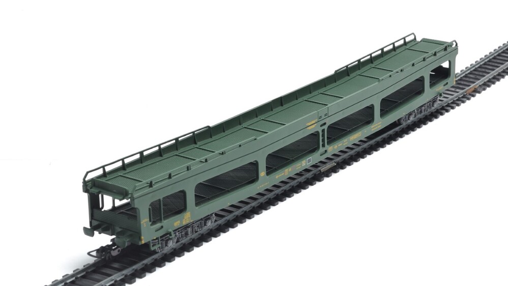 Deze groene wagen op draaistellen heeft als lettercode DDm. Hij dient voor het vervoer van auto's. Op de zijkanten van de wagen, die door de centrale werkplaats van Schaarbeek werd onderhouden, staan verschillende opschriften zoals het identificatienummer, het typenummer 3000D3 en het NMBS-logo. De maquette is op schaal H0 1/87 vervaardigd.