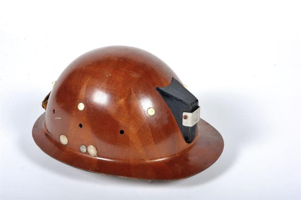 BeschrijvingOp deze ronde helm kon men vooraan een lampje bevestigen. De helm wordt gesloten door een riempje onder de kin. De binnenkant heeft een leren band en een net van textielstroken, om het comfort en de pasvorm te verbeteren.