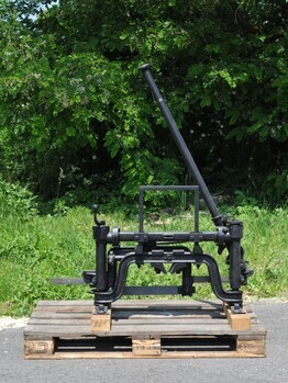 BeschrijvingDit zwarte toestel diende om spoorstaven door te zagen. Met een hefboommechanisme werd de zaag in beweging gezet. Dit mechanisme moest met de hand worden aangedreven. De zaag is op twee houten balken gemonteerd.