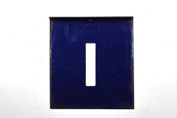 Beschrijvingblauw bordje met wit cijfer. Werd aan een treinaankondiger gehangen om het perron van de aankomende trein aan te duiden.