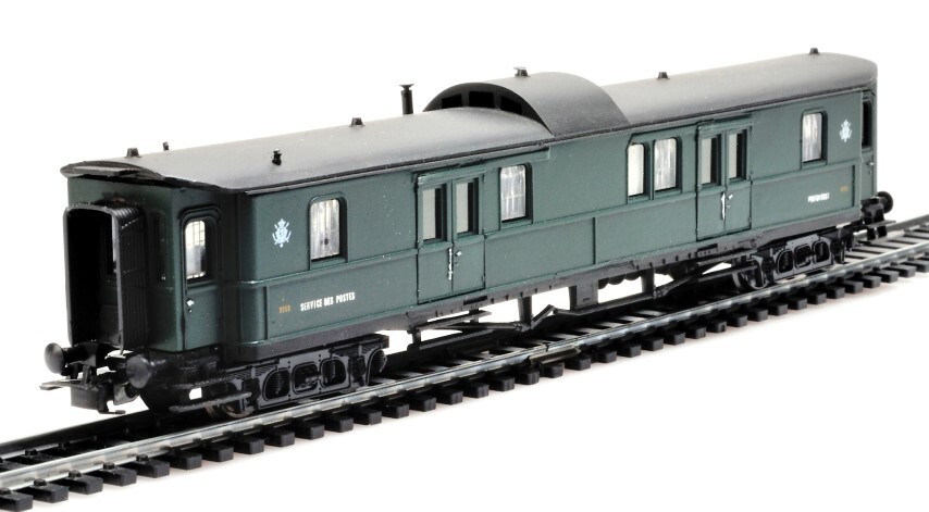 Deze pakwagen op draaistellen werd na de Eerste Wereldoorlog aan de Belgische Staatsspoorwegen gegeven als herstelbetaling. Daar werd hij gebruikt door de Postdienst. Het schaalmodel is donkergroen, heeft een zwart dak en op de zijkanten staat het logo van de Postdienst, het identificatienummer en 'service des postes postdienst'. De maquette is op schaal H0 1/87 vervaardigd.